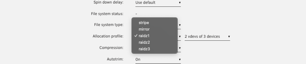 - Choisissez votre profil d'allocation - cela détermine la redondance et les performances de votre pool.